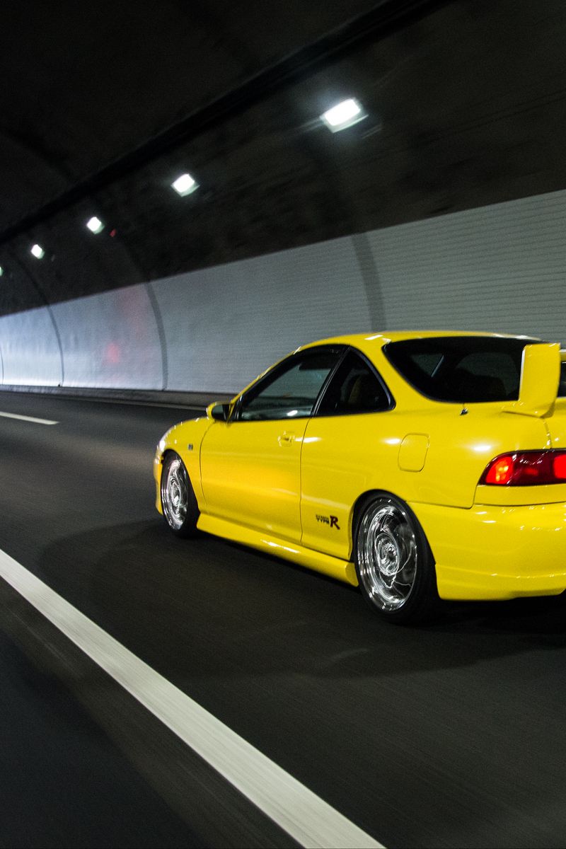 Download 800x1200 acura integra, acura, car, yellow wallpaper, background iphone 4s/4 for parallax