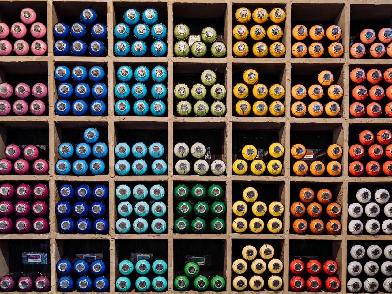Download 1280x960 aerosol, paint, graffiti, shelves wallpaper, background standard 4:3