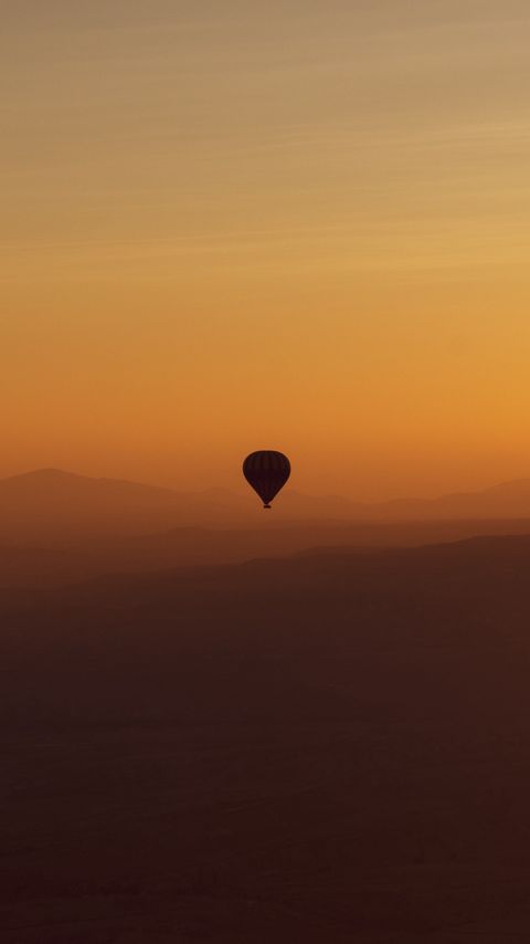 Download 480x854 air balloon, mountains, sunset, dusk, fog wallpaper, background nokia lumia 630, sony ericsson xperia