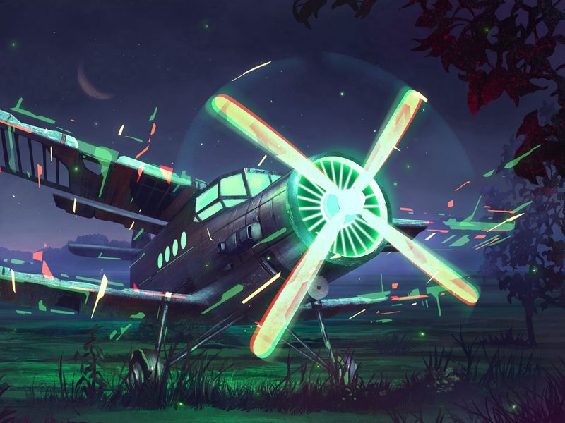 Download 800x600 airplane, propeller, art, glow, night wallpaper, background pocket pc, pda
