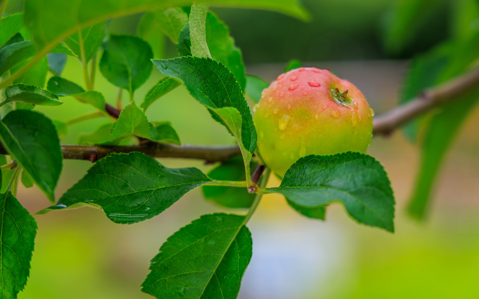 Download 1680x1050 apple, leaves, branches, drops, macro wallpaper, background widescreen 16:10