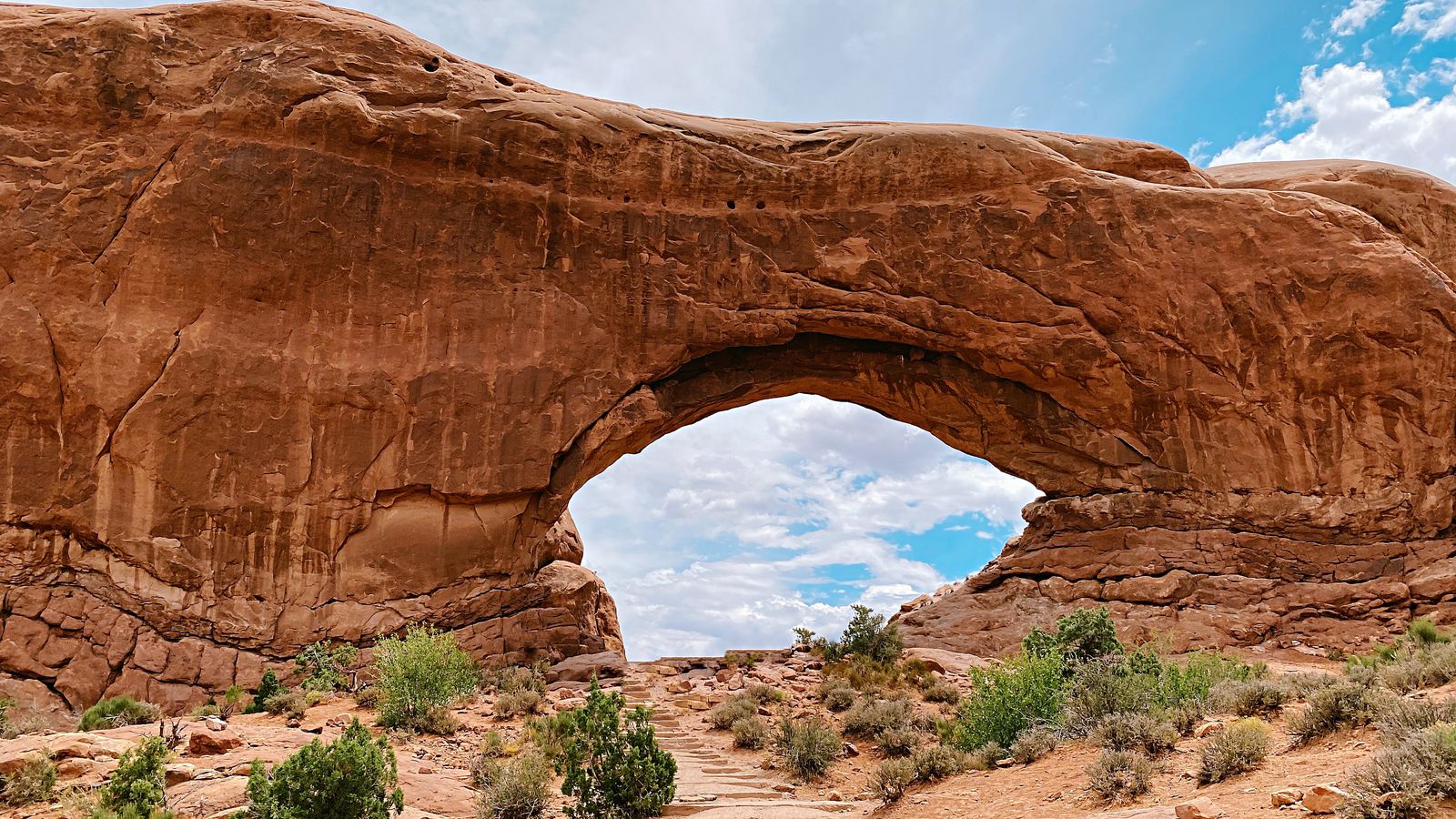 Download 1600x900 arch, rock, stone, sandy, sky wallpaper, background widescreen 16:9