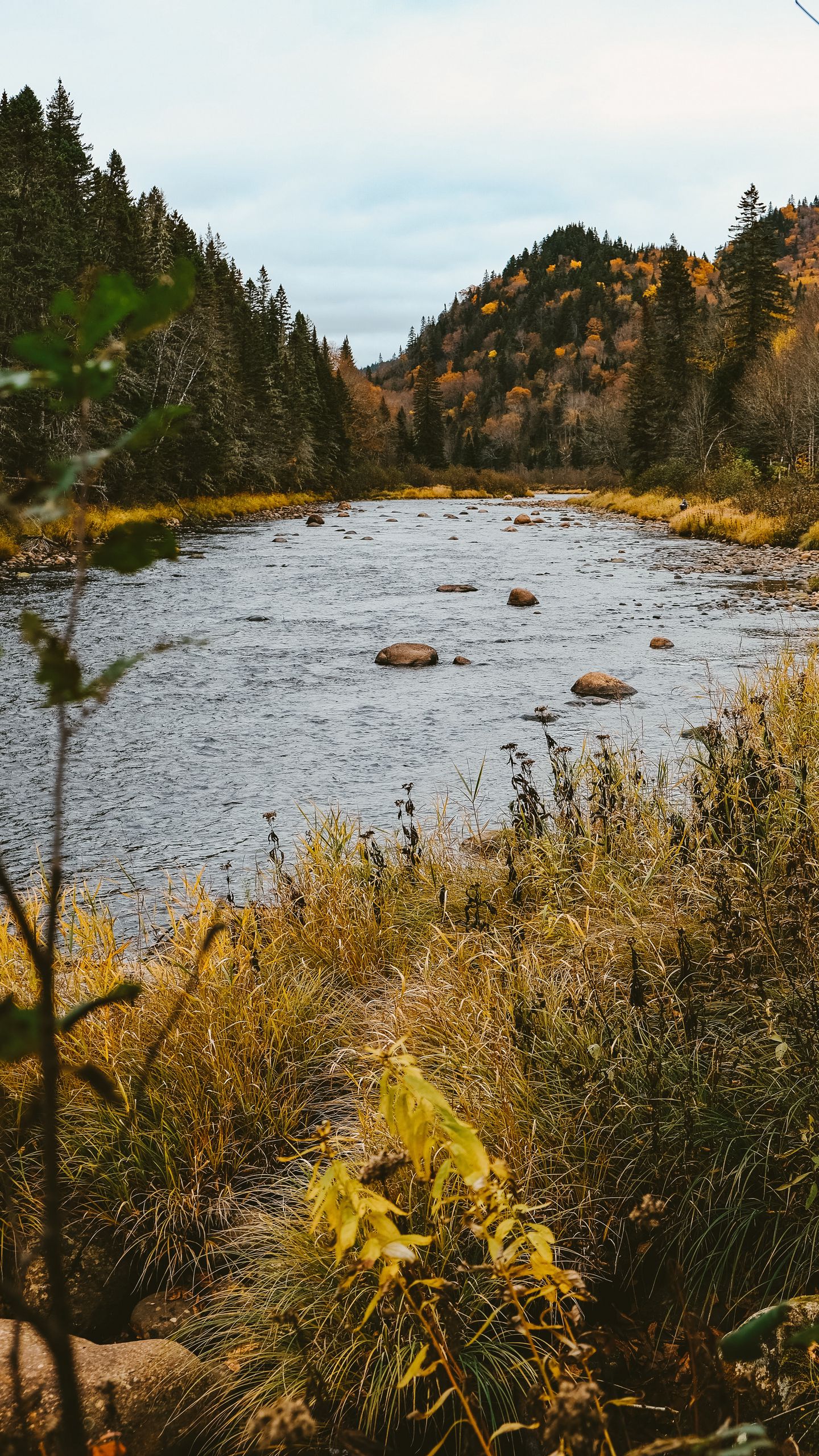 Download 1440x2560 autumn, river, hills, forest wallpaper, background qhd samsung galaxy s6, s7, edge, note, lg g4