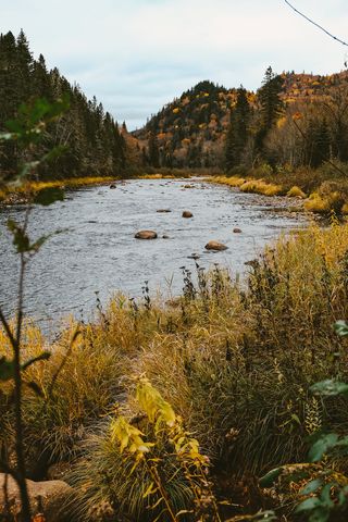 Download 320x480 autumn, river, hills, forest wallpaper, background samsung galaxy ace gt-s5830, sony xperia e, miro, htc wildfire s, c, lg optimus