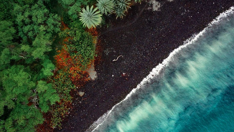 Download 960x544 beach, aerial view, trees, tide wallpaper, background playstation ps vita
