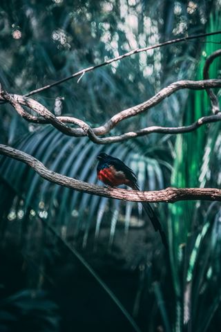 Download 320x480 bird, exotic, branch, blur wallpaper, background samsung galaxy ace gt-s5830, sony xperia e, miro, htc wildfire s, c, lg optimus