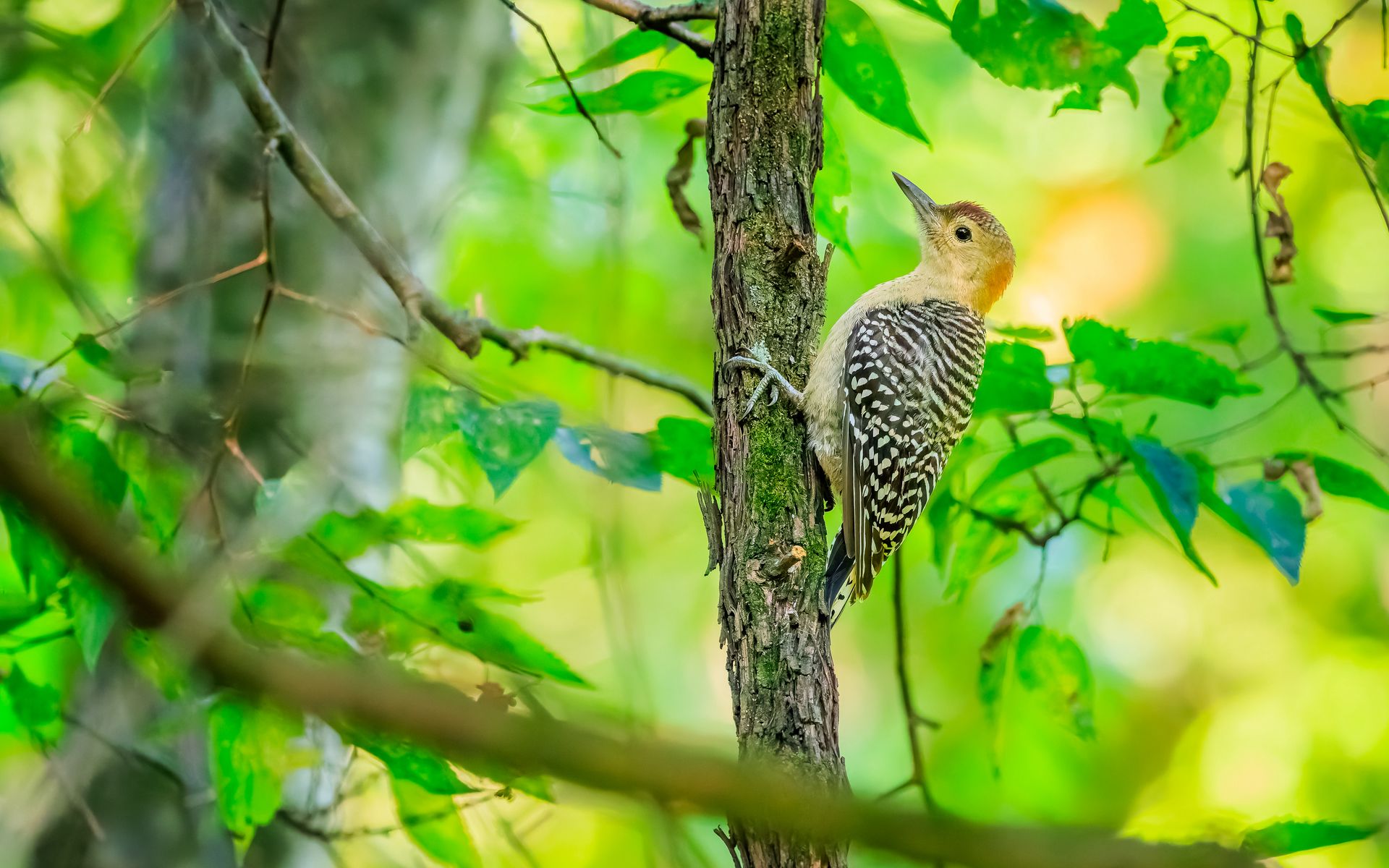 Download 1920x1200 bird, tree, bark, wildlife, leaves wallpaper, background widescreen 16:10