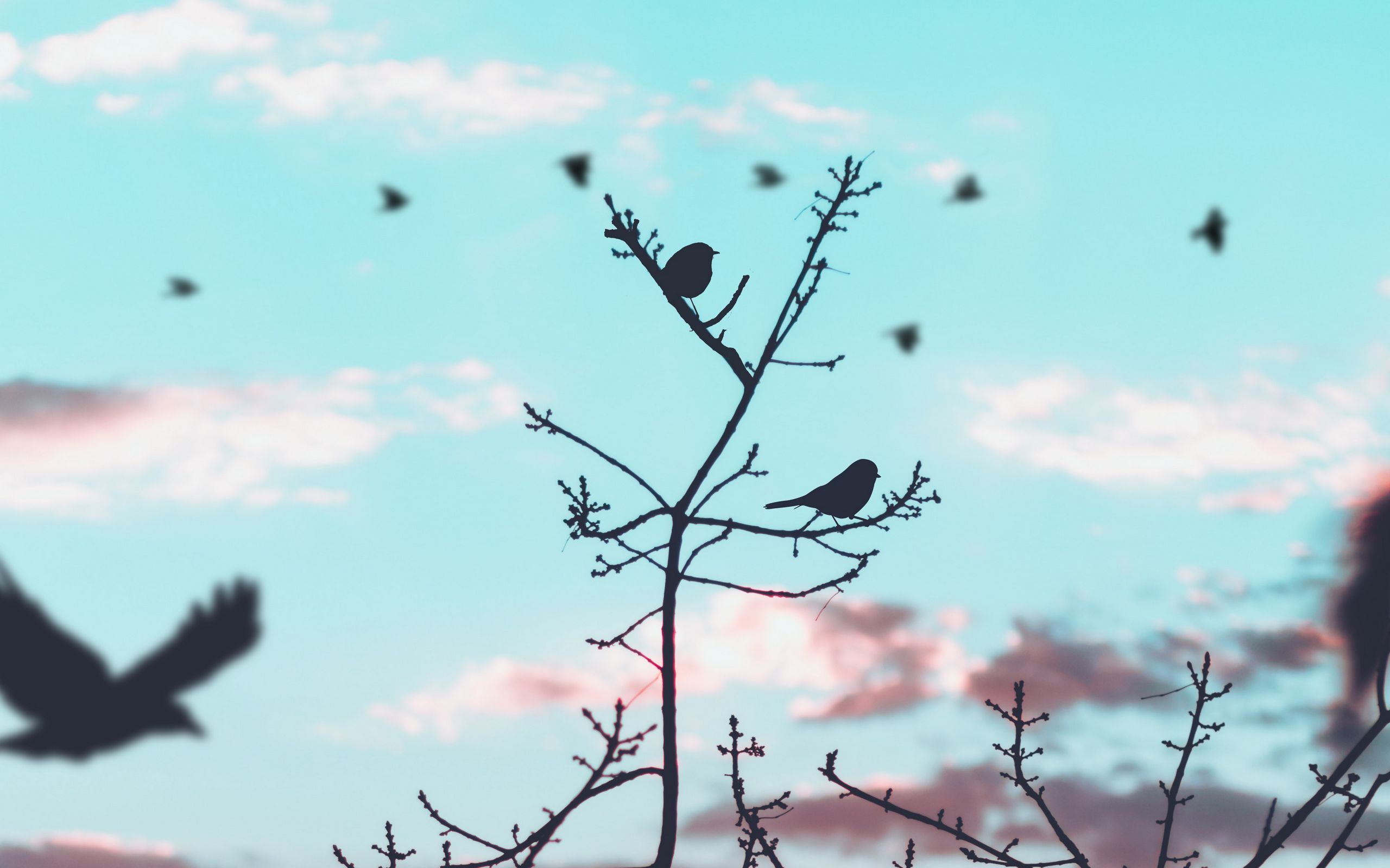 Download 2560x1600 birds, branches, silhouette, sky wallpaper, background widescreen 16:10