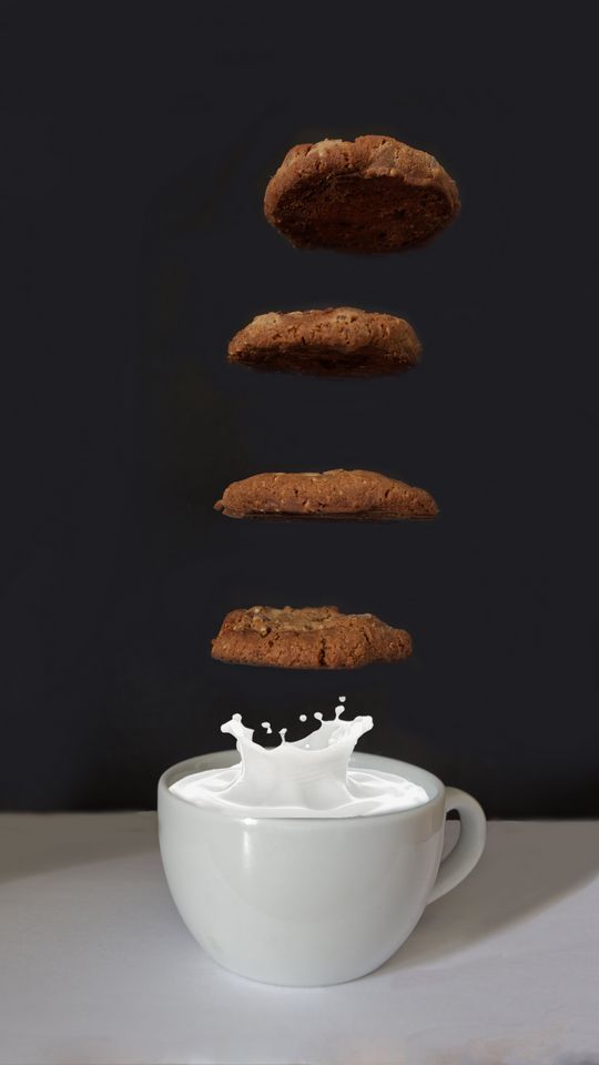 Download 540x960 biscuits, milk, cup, drop, dessert wallpaper, background samsung galaxy s4 mini, microsoft lumia 535, philips xenium, lg l90, htc sensation