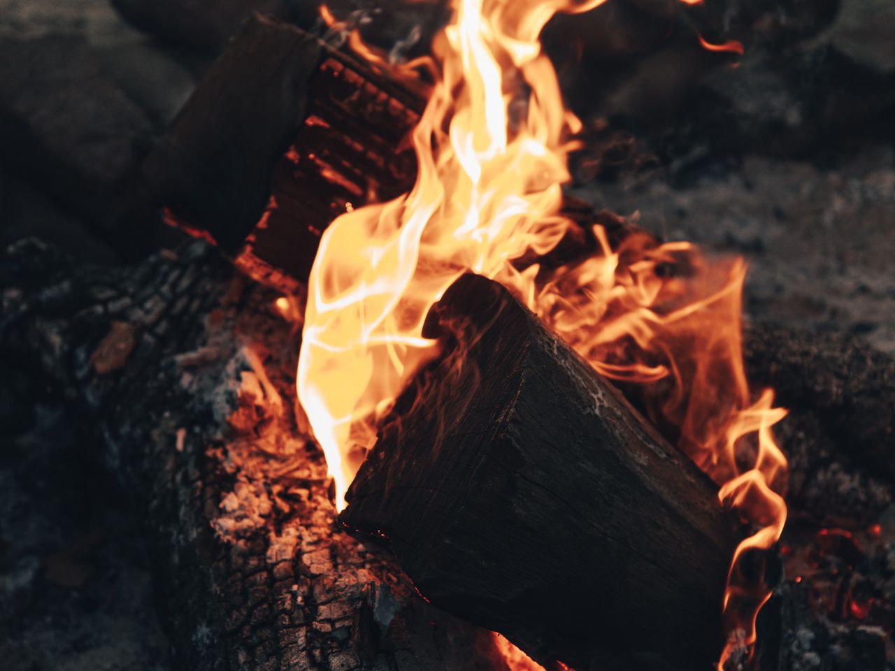 Download 1280x960 bonfire, fire, flame, wood, coals, heat wallpaper, background standard 4:3