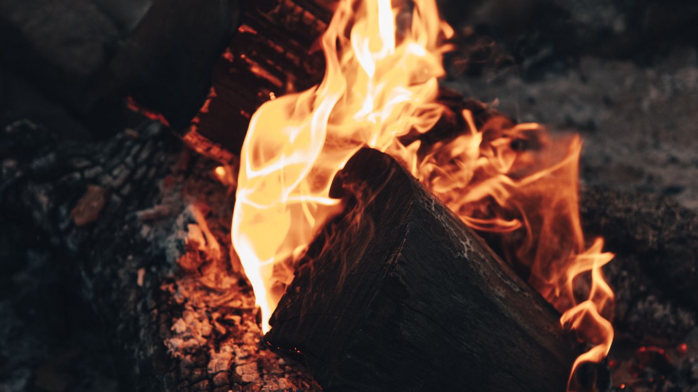 Download 1366x768 bonfire, fire, flame, wood, coals, heat wallpaper, background tablet, laptop