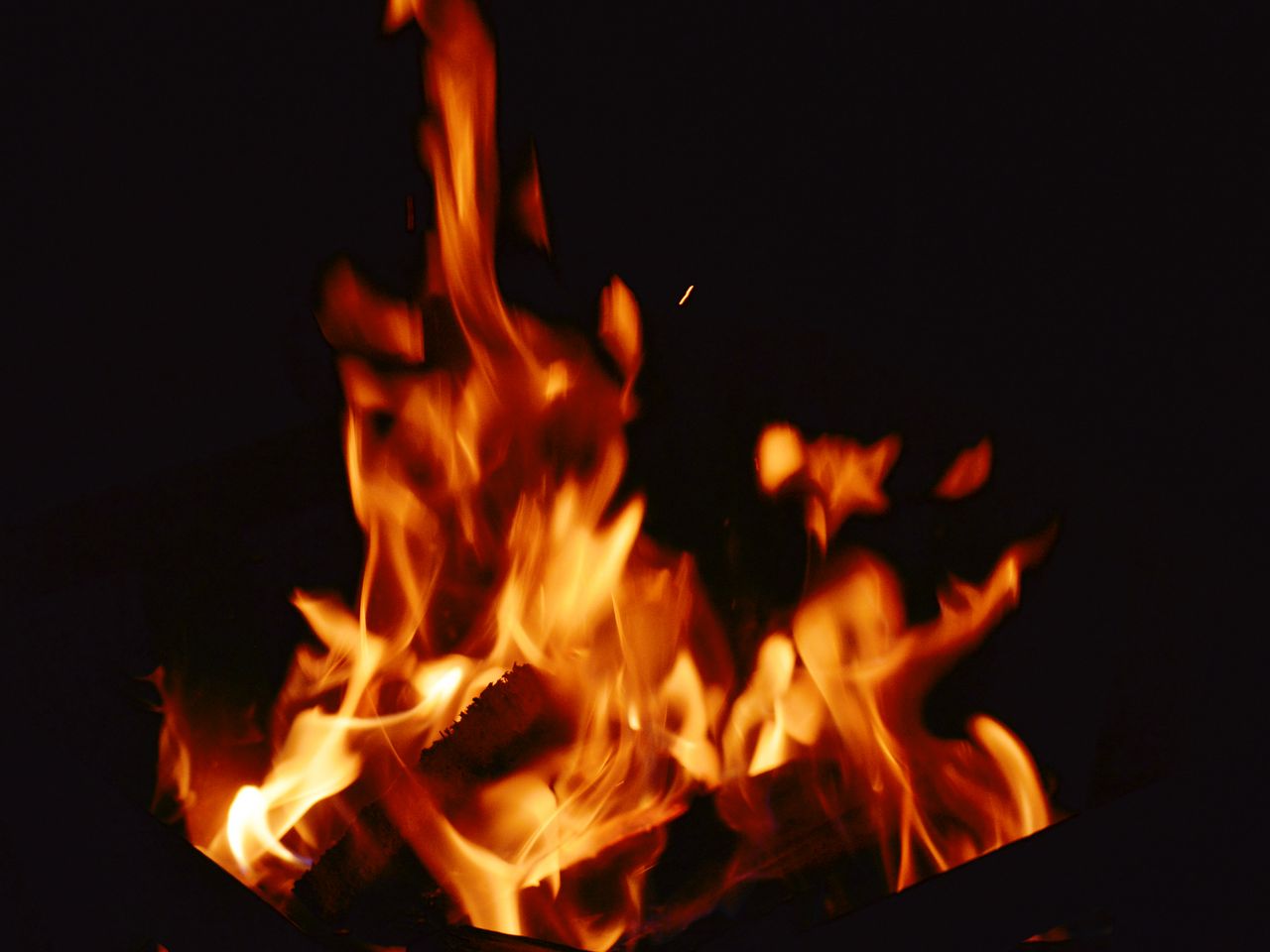 Download 1280x960 bonfire, flame, fire, firewood, night wallpaper, background standard 4:3