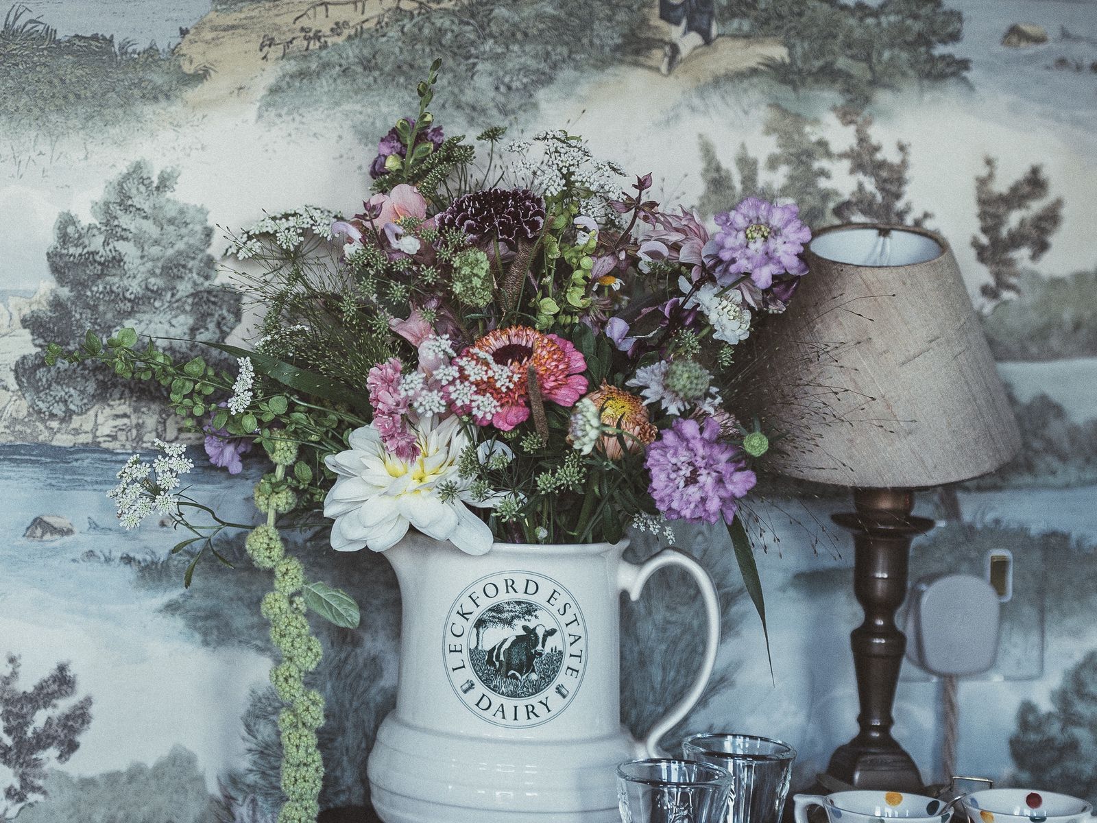 Download 1600x1200 bouquet, lamp, cups, wall wallpaper, background standard 4:3