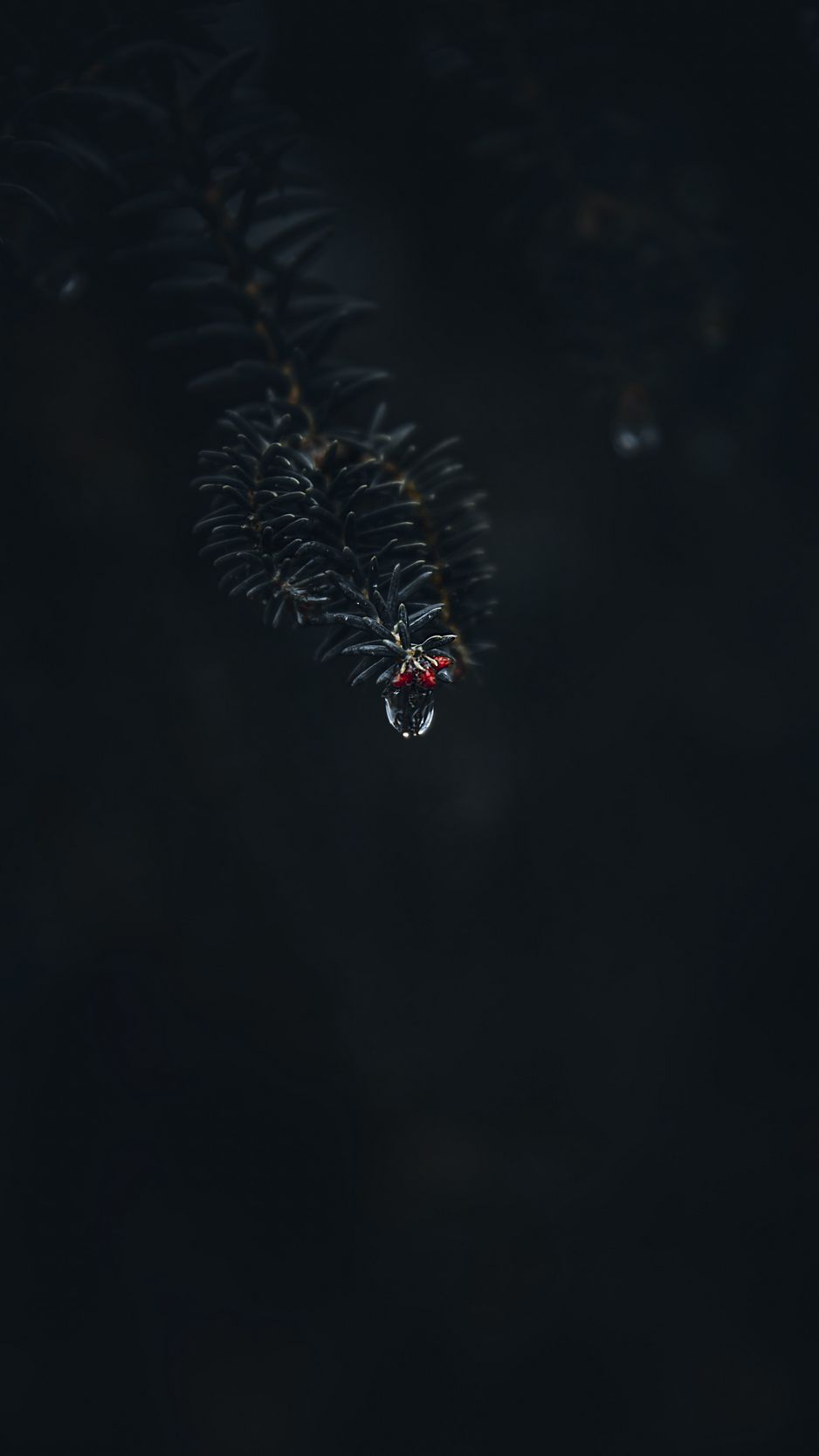 Download 938x1668 branch, drop, macro, needles, dark wallpaper, background iphone 8/7/6s/6 for parallax