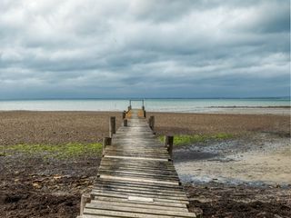 Download 320x240 bridge, pier, beach, sea, horizon, clouds, sky, landscape wallpaper, background nokia e72, e71, asha, alcatel onetouch