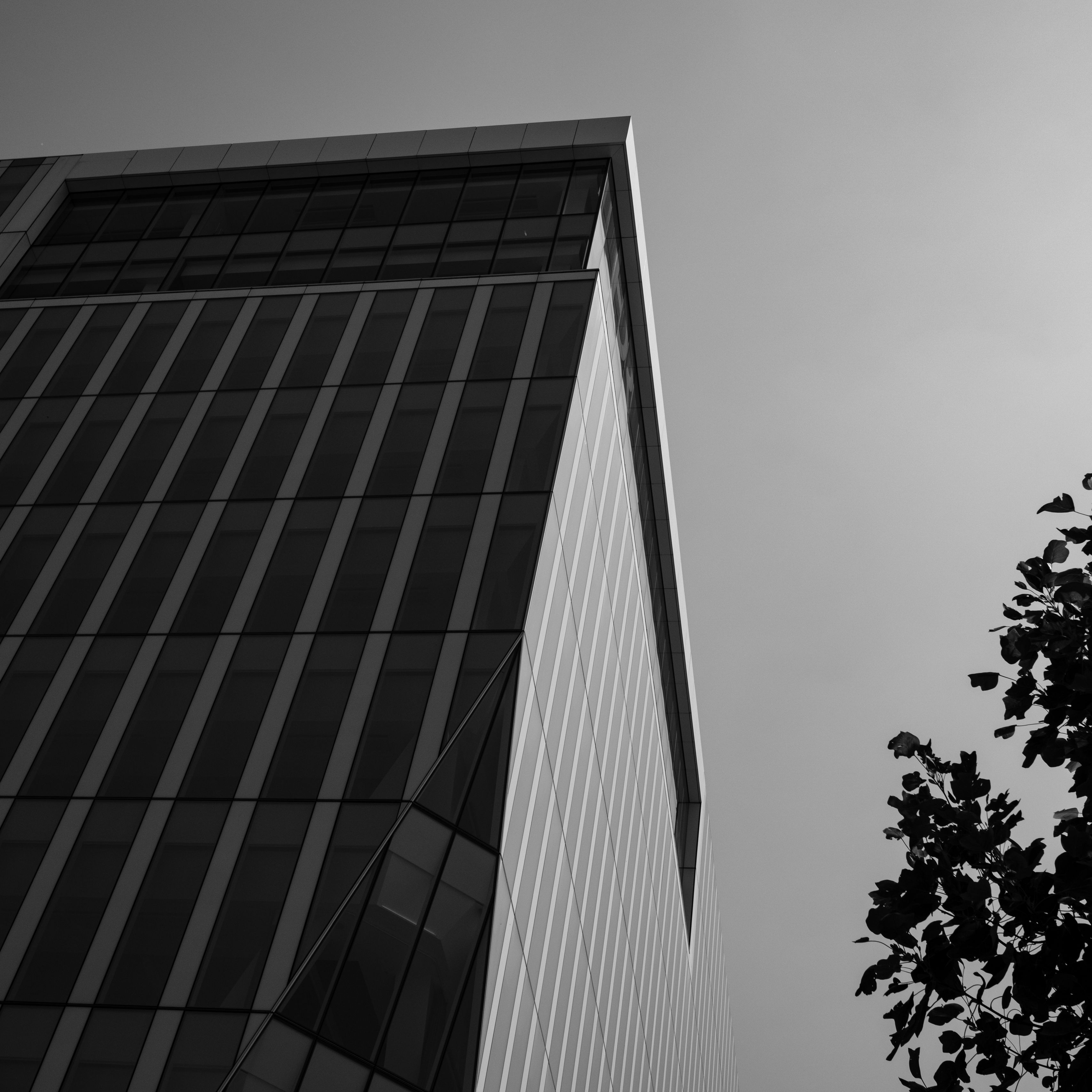 Download 3415x3415 building, architecture, angle, tree, leaves, bw wallpaper, background ipad pro 12.9" retina for parallax