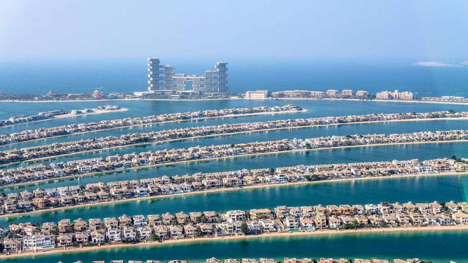 Download 1600x900 buildings, houses, islands, sea, dubai, uae, city wallpaper, background widescreen 16:9