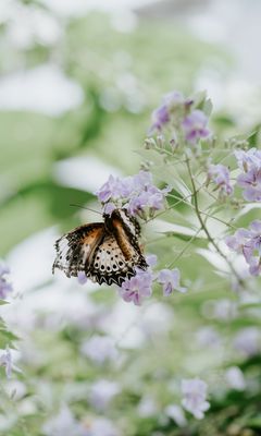 Download 240x400 butterfly, flower, close-up, motion blur wallpaper, background nokia asha 311, samsung galaxy 580, omnia, lg kp500