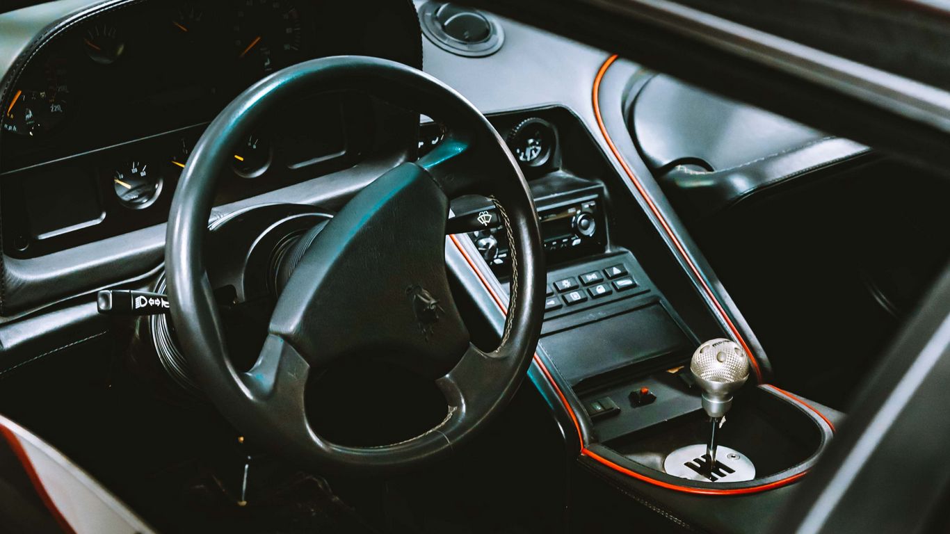 Download 1366x768 car, black, salon, interior, steering wheel wallpaper, background tablet, laptop