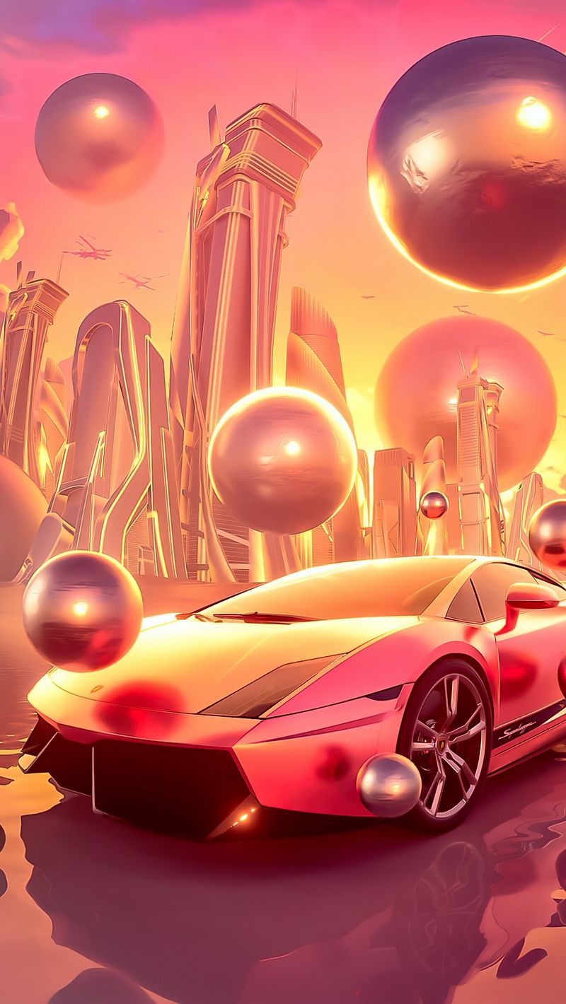 Download 800x1420 car, sports car, balls, buildings, art wallpaper, background iphone se/5s/5c/5 for parallax