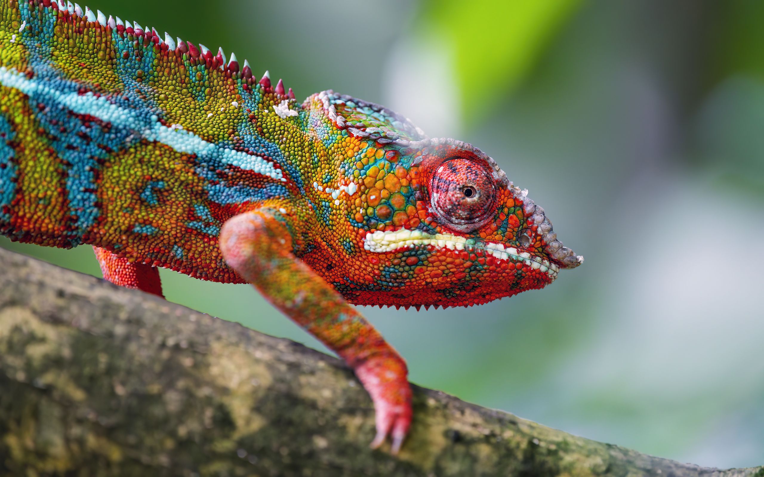 Download 2560x1600 chameleon, leather, scales, glance, colorful, blur wallpaper, background widescreen 16:10