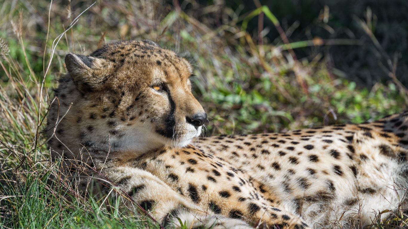 Download 1366x768 cheetah, big cat, predator, wild animal, grass, wildlife wallpaper, background tablet, laptop