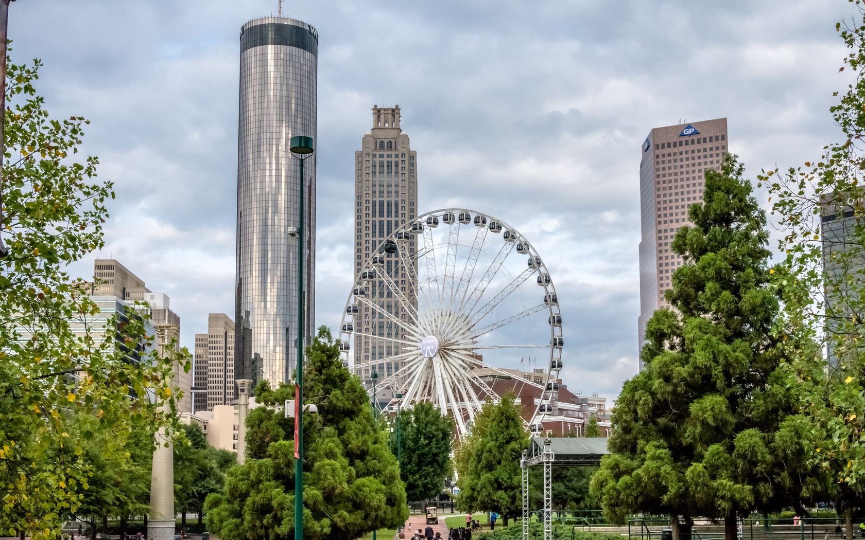 Download 1680x1050 city, buildings, architecture, ferris wheel, attraction wallpaper, background widescreen 16:10