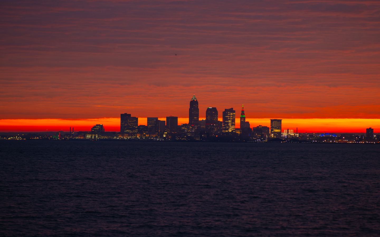 Download 1440x900 city, sea, sunrise, dark wallpaper, background widescreen 16:10