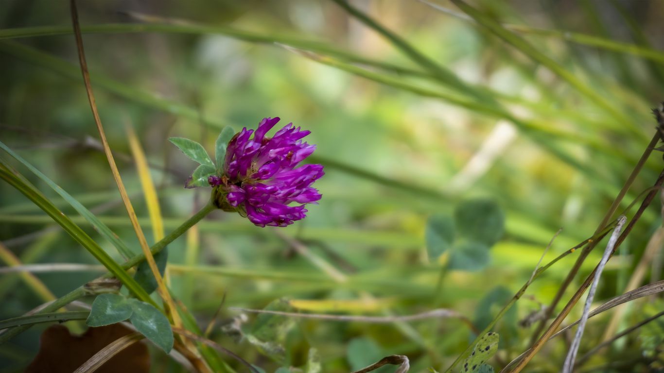 Download 1366x768 clover, flower, bud, purple, grass wallpaper, background tablet, laptop