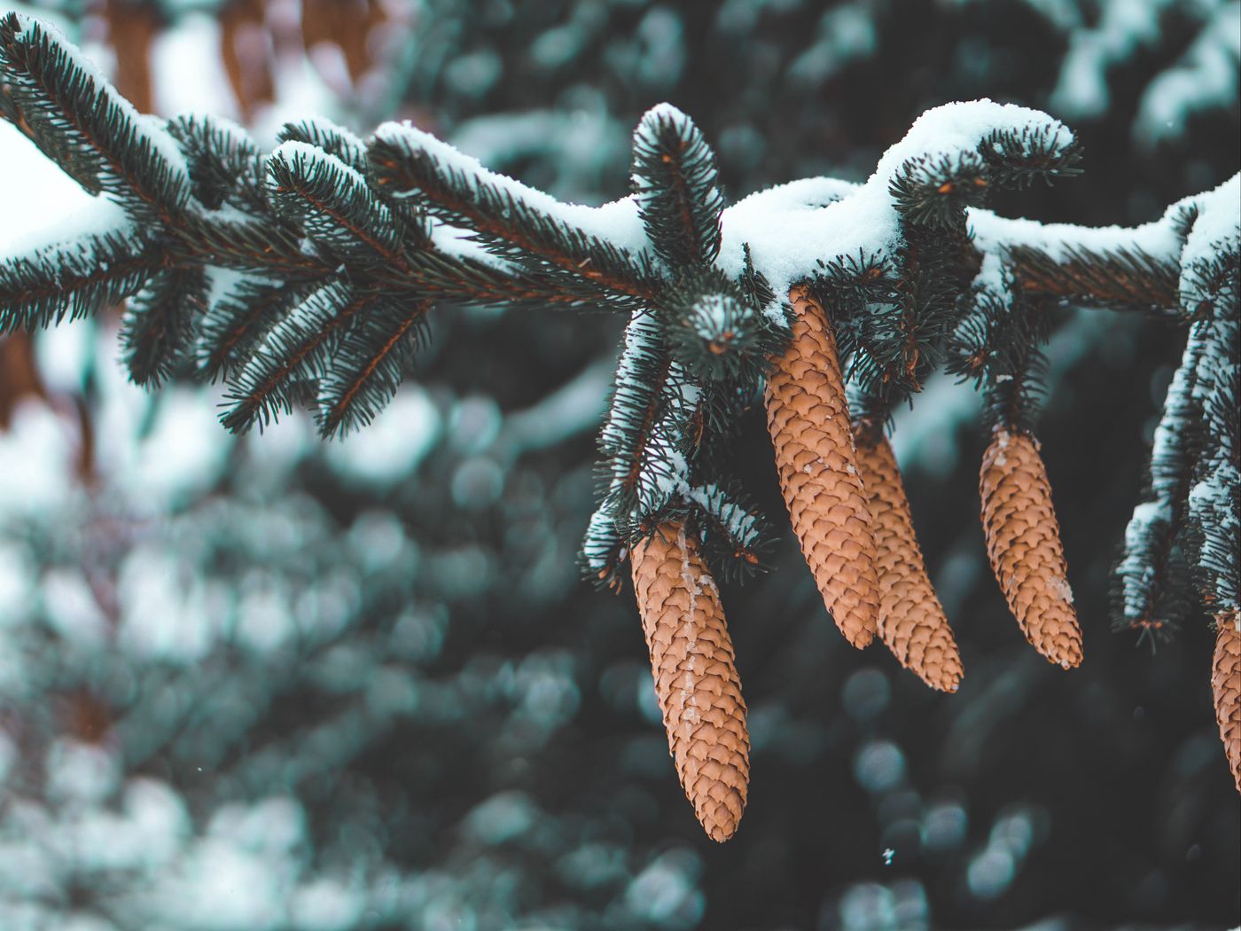 Download 1400x1050 cones, fir, needles, branch, snow wallpaper, background standard 4:3