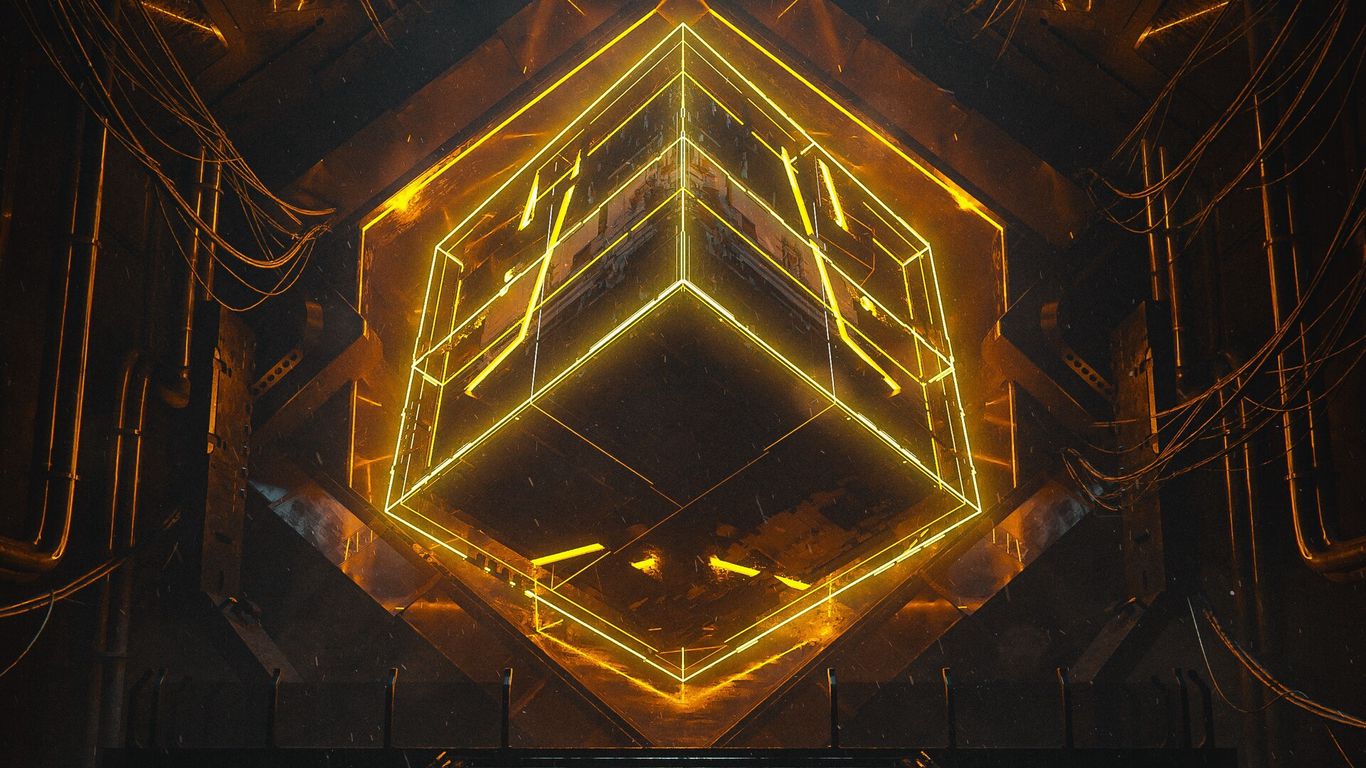 Download 1366x768 cube, glow, figure, monument, dark wallpaper, background tablet, laptop