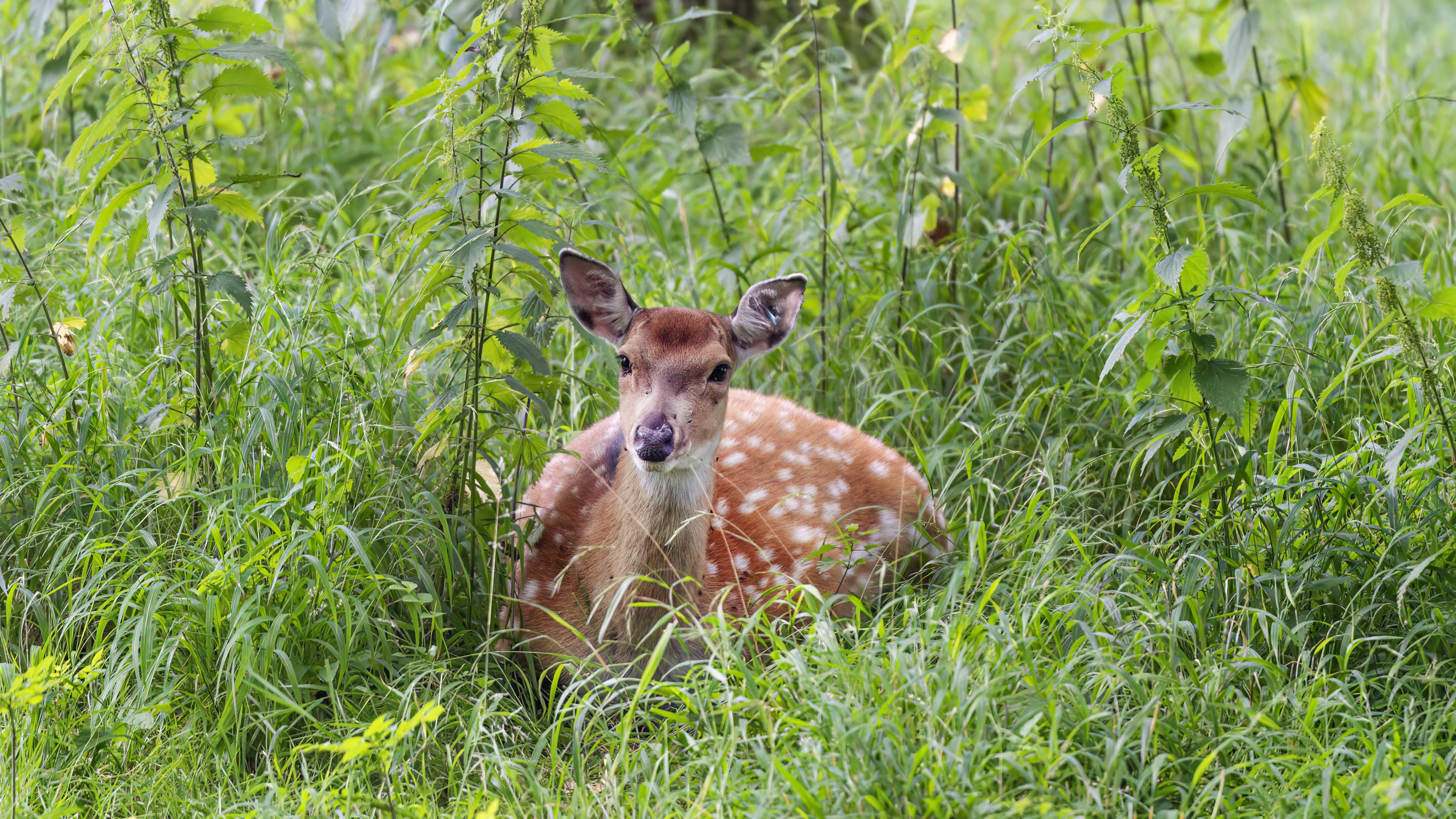 Download 3840x2160 deer, grass, forest, animal, wildlife wallpaper, background 4k uhd 16:9