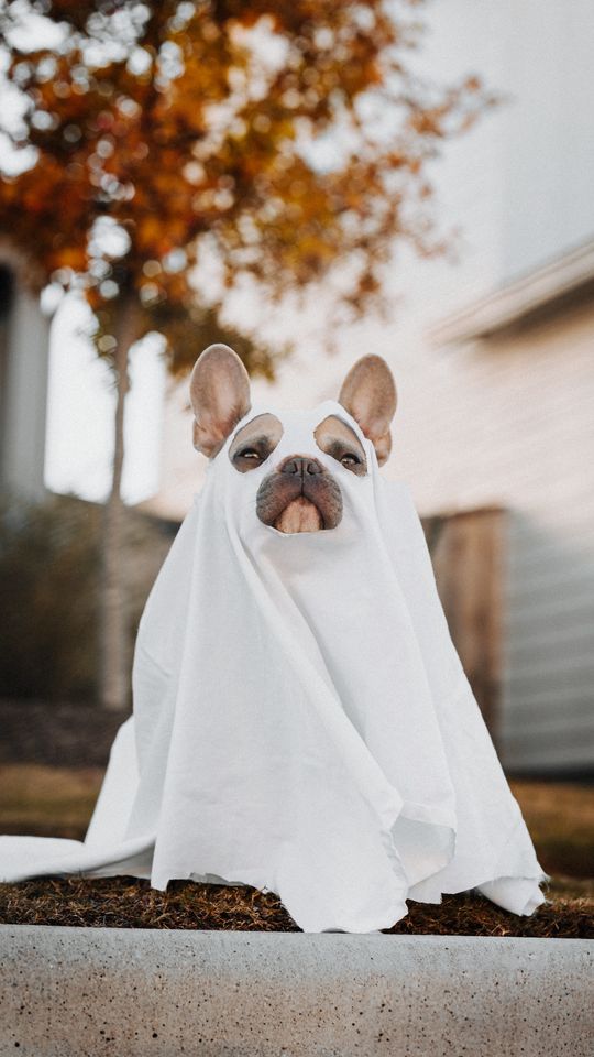 Download 540x960 dog, cape, ghost, pet wallpaper, background samsung galaxy s4 mini, microsoft lumia 535, philips xenium, lg l90, htc sensation