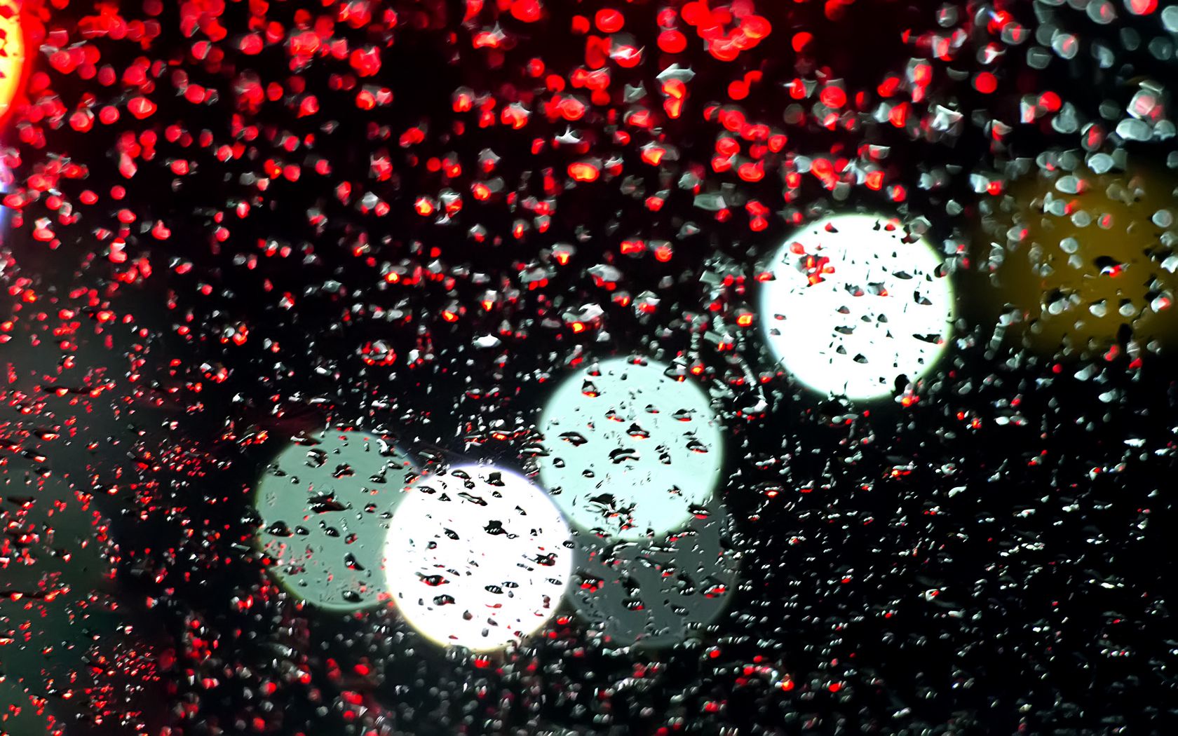 Download 1680x1050 drops, wet, bokeh, surface, lights, glass, rain wallpaper, background widescreen 16:10