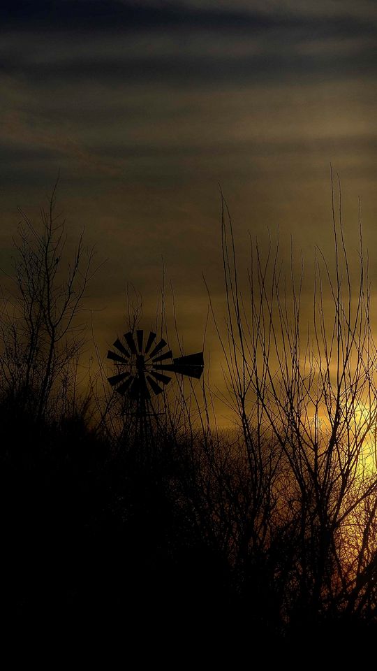 Download 540x960 dusk, landscape, windmill, horizon, dark wallpaper, background samsung galaxy s4 mini, microsoft lumia 535, philips xenium, lg l90, htc sensation