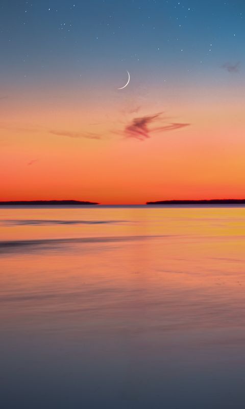 Download 480x800 dusk, sky, moon, sea, horizon wallpaper, background nokia x, x2, xl, 520, 620, 820, samsung galaxy star, ace, asus zenfone 4