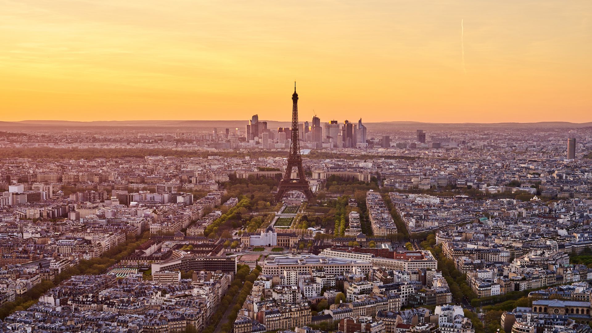 Download 1920x1080 eiffel tower, city, sunset, streets, architecture, paris, france wallpaper, background full hd, hdtv, fhd, 1080p