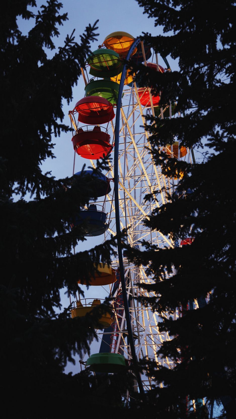 Download 938x1668 ferris wheel, trees, dark, construction, attraction wallpaper, background iphone 8/7/6s/6 for parallax