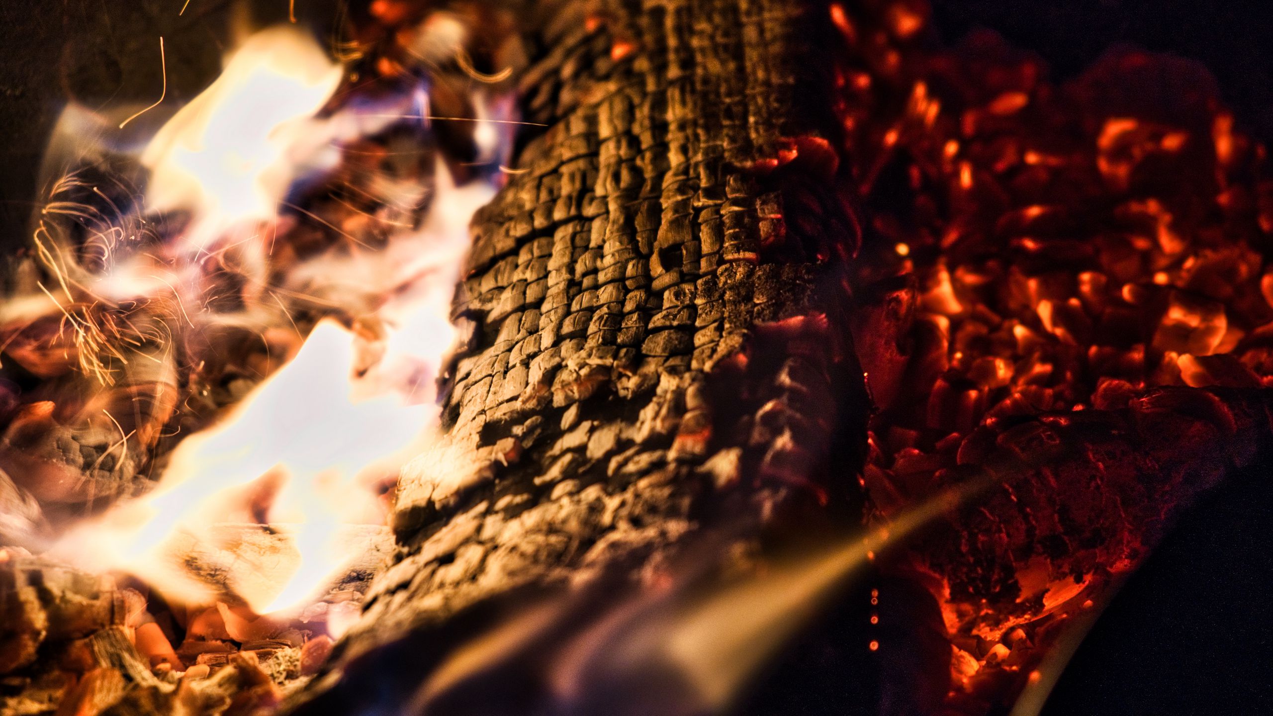 Download 2560x1440 fire, flame, wood wallpaper, background widescreen 16:9