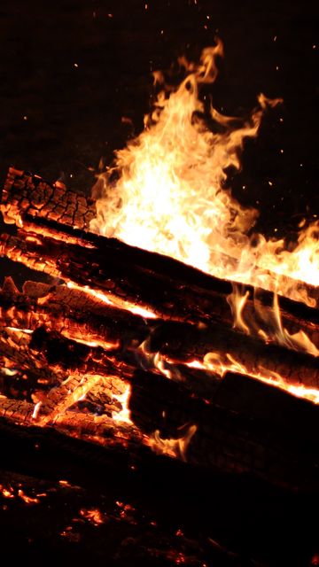 Download 360x640 fire, logs, darkness, sparks wallpaper, background nokia n8, c5, c6, c7, e7, x6 nokia 5800, 5230, 5228, sony ericsson vivaz