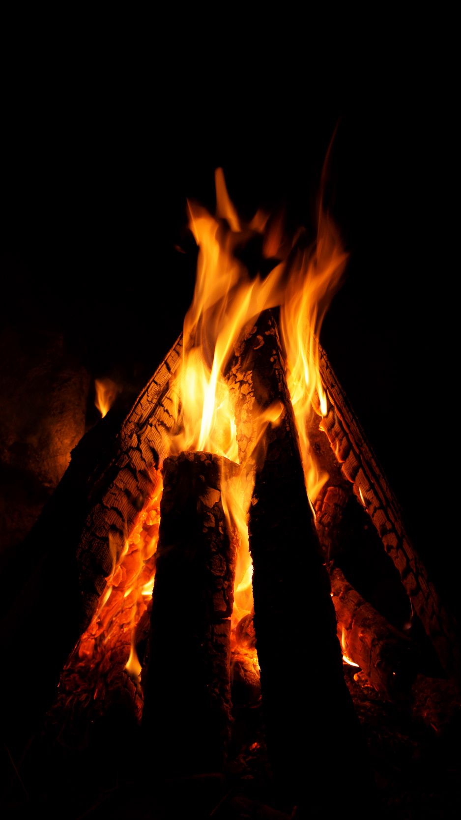 Download 938x1668 fire, logs, flame, darkness wallpaper, background iphone 8/7/6s/6 for parallax