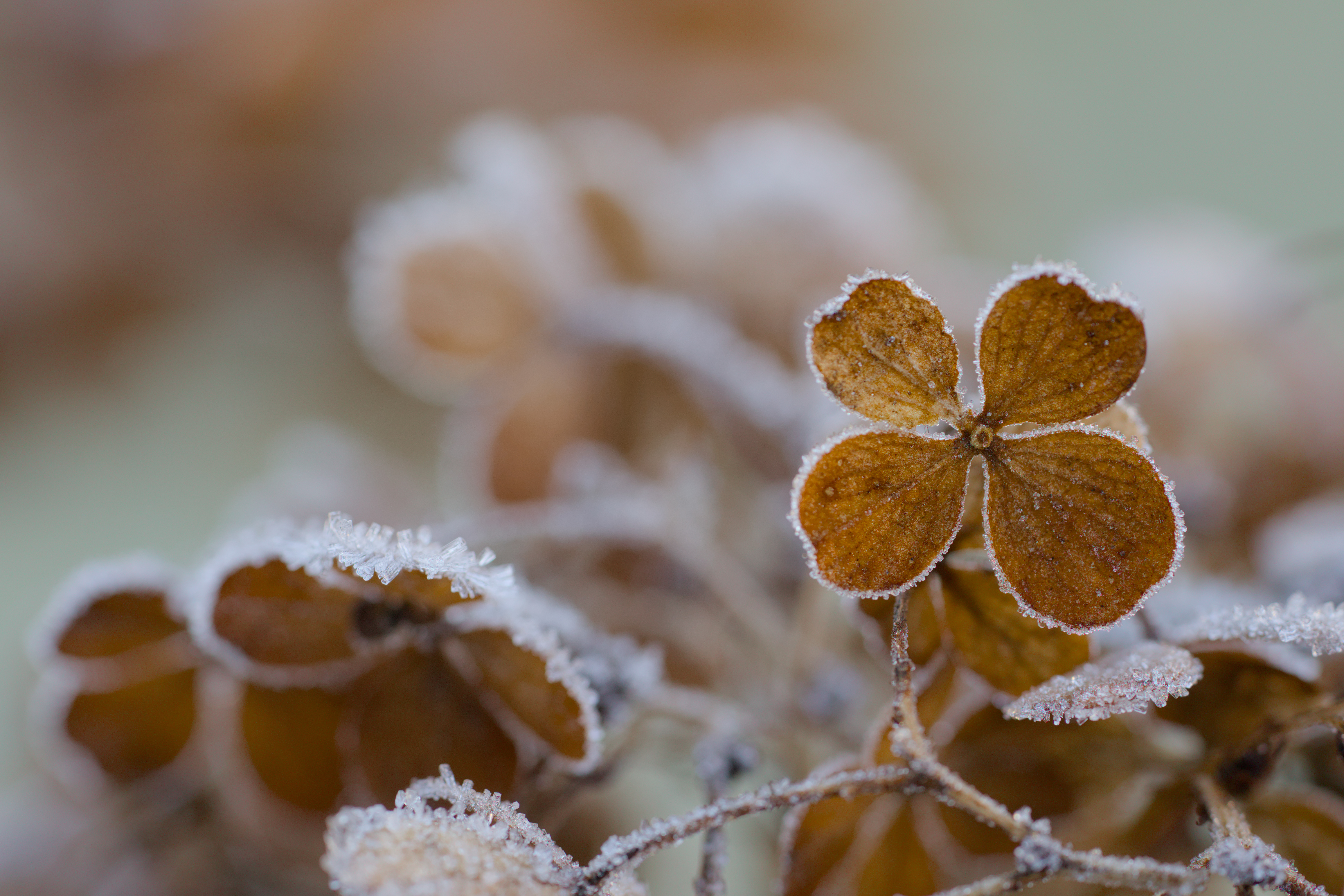 Download 7317x4878 flower, frost, macro wallpaper, background