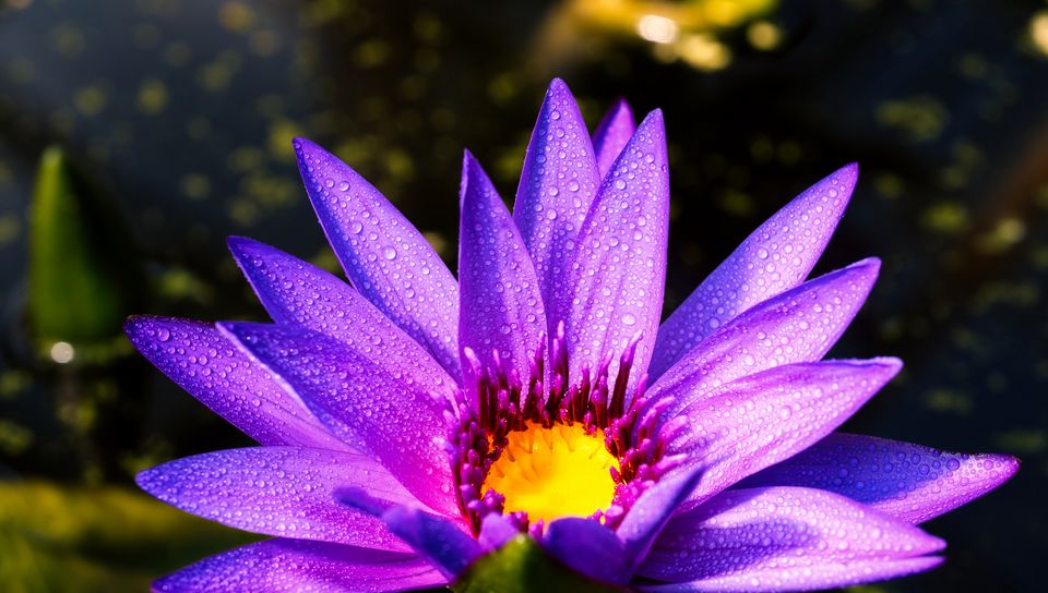 Download 960x544 flower, petals, drops, purple wallpaper, background playstation ps vita