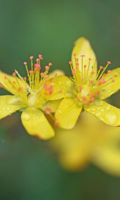 Download 240x400 flowers, petals, drops, macro, yellow, blur wallpaper, background nokia asha 311, samsung galaxy 580, omnia, lg kp500