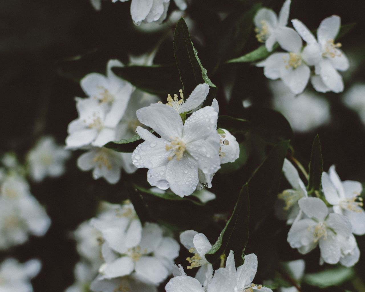 Download 1280x1024 flowers, white, drops wallpaper, background standard 5:4