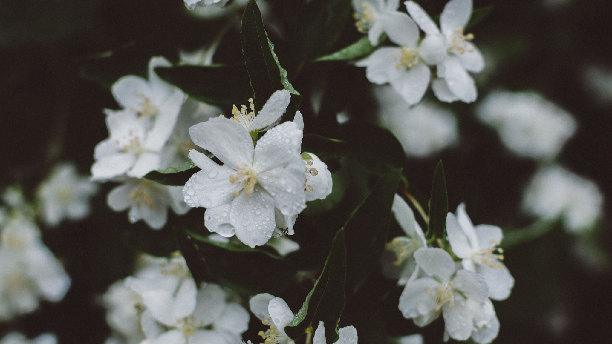 Download 2048x1152 flowers, white, drops wallpaper, background ultrawide monitor