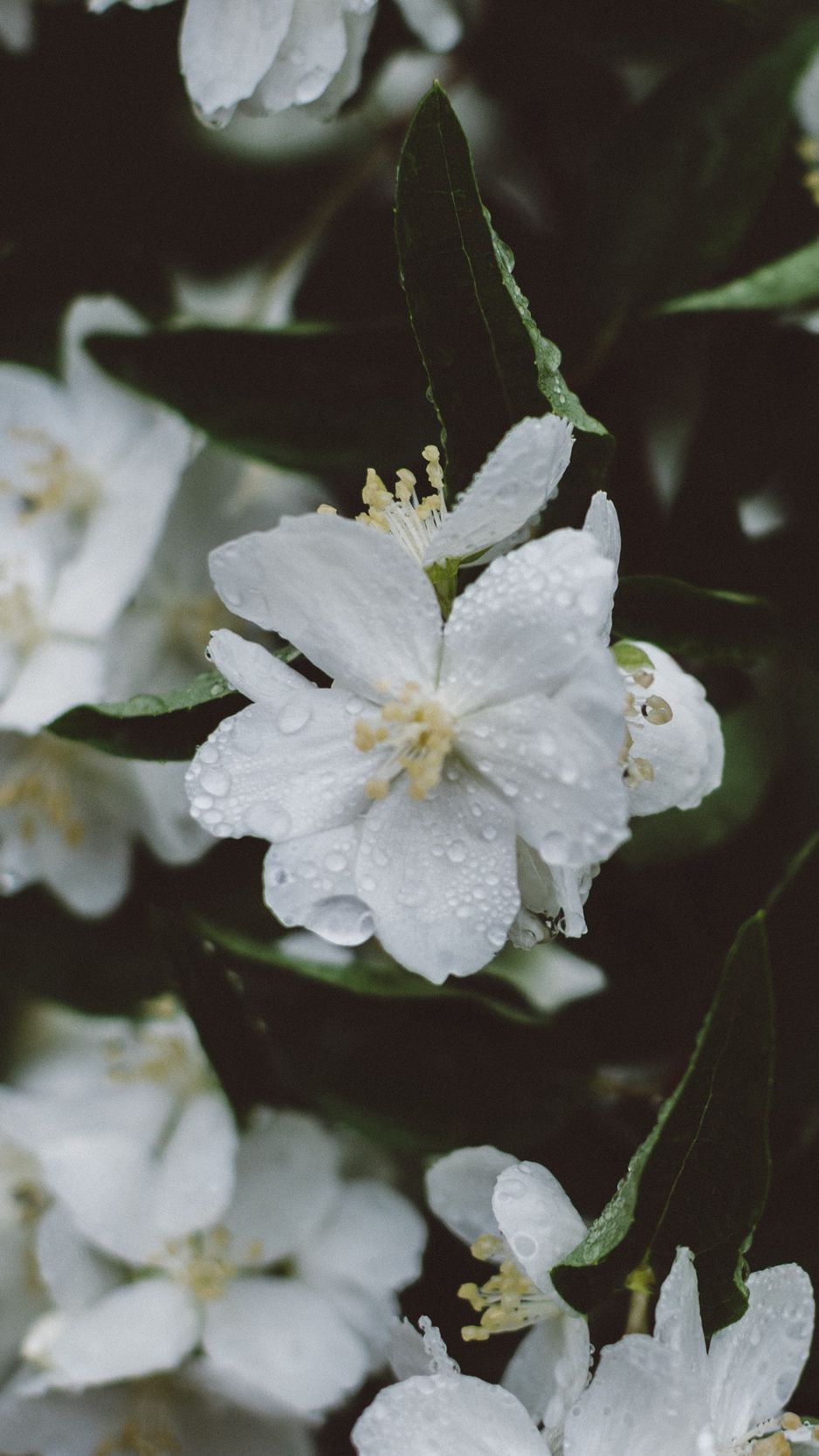 Download 938x1668 flowers, white, drops wallpaper, background iphone 8/7/6s/6 for parallax