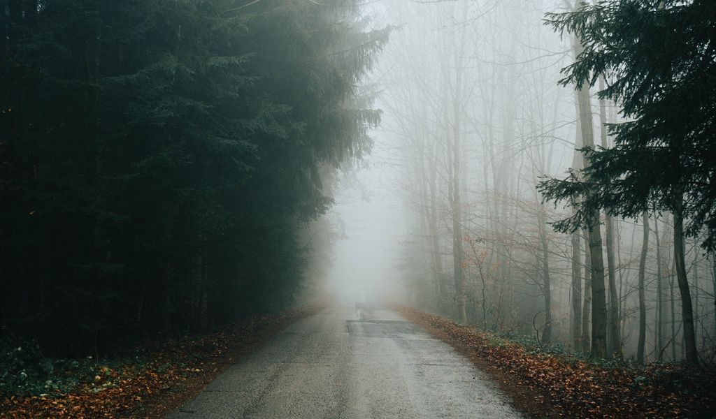Download 1024x600 fog, road, trees, branches, autumn wallpaper, background netbook, tablet