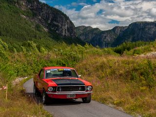 Download 320x240 ford mustang, car, muscle car, red, road, mountains wallpaper, background nokia e72, e71, asha, alcatel onetouch