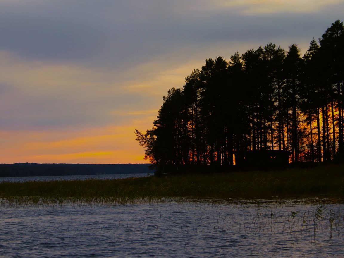 Download 1152x864 forest, trees, lake, sky, horizon, landscape, nature, dark wallpaper, background standard 4:3